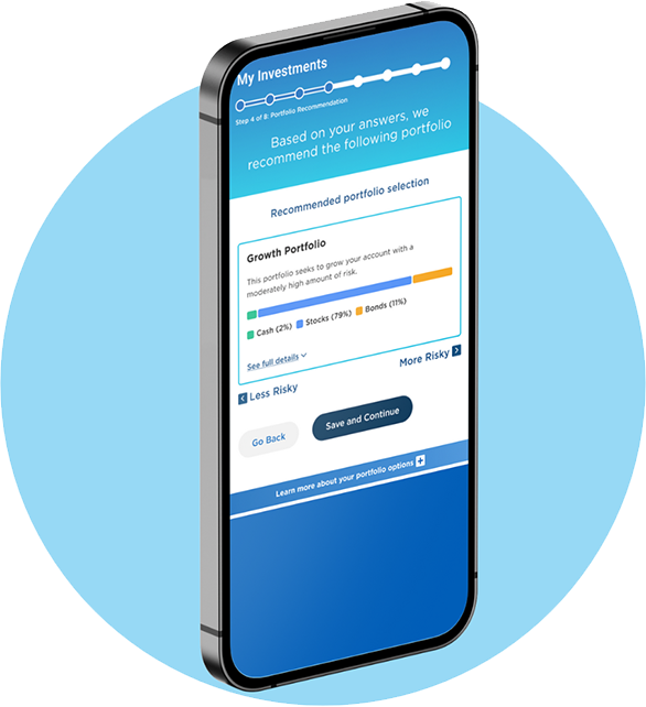 Te haremos una serie de preguntas al abrir una cuenta de Inversión Guiada, como ingresos, patrimonio neto y situación laboral. También rellenarás un breve cuestionario para recabar información sobre tu situación financiera, tolerancia al riesgo y horizonte temporal, que utilizaremos para determinar tu cartera recomendada.